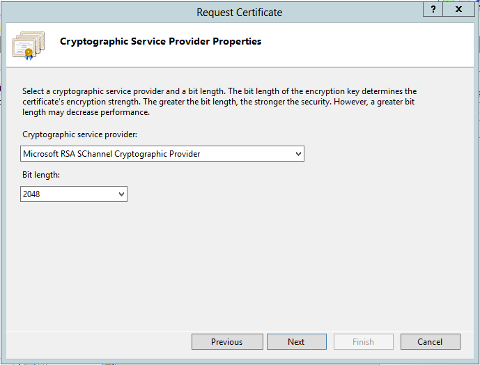 Proveedor de servicios criptográficos: en la lista desplegable, seleccione Microsoft RSA SChannel.